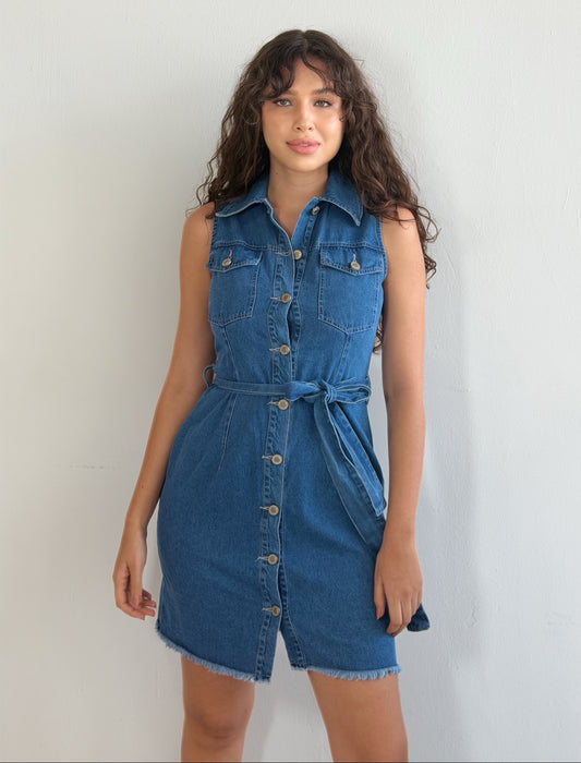 Vestido Mezclilla sin mangas con cinturon