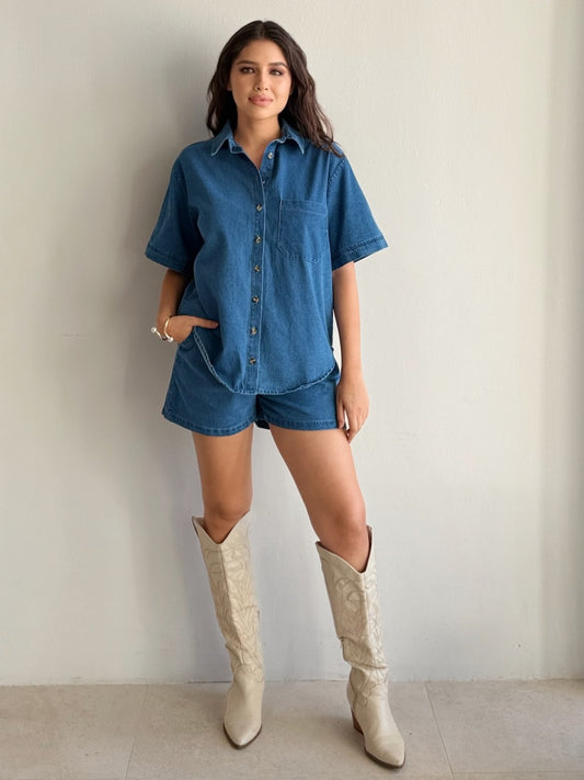 Conjunto Camisa y falda de Mezclilla con Brillos