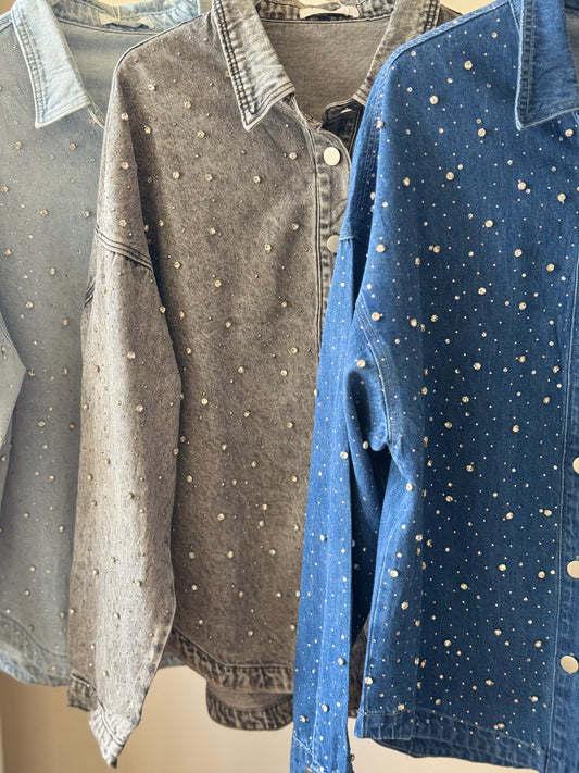 Sobre camisa de mezclilla con brillos