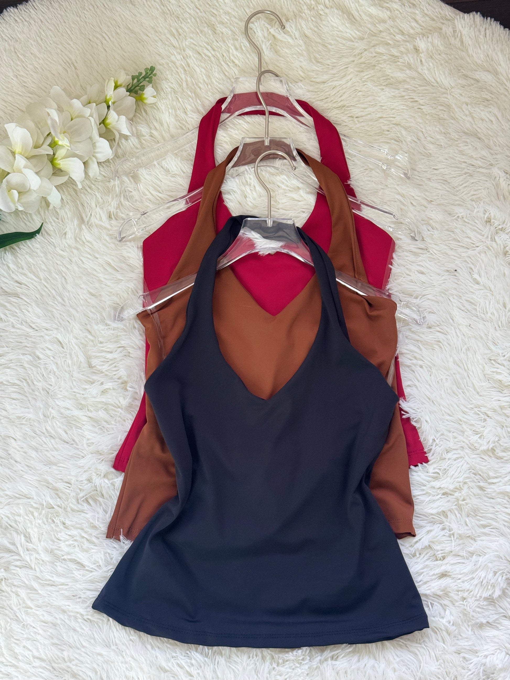 Este top halter está confeccionado con una suave y elástica licra que te brinda comodidad y estilo en uno. Con su corte halter, realza tu figura y su tela de alta calidad garantiza durabilidad y confort en cada uso. Ideal para combinar con cualquier prenda y lucir elegante en cualquier ocasión.