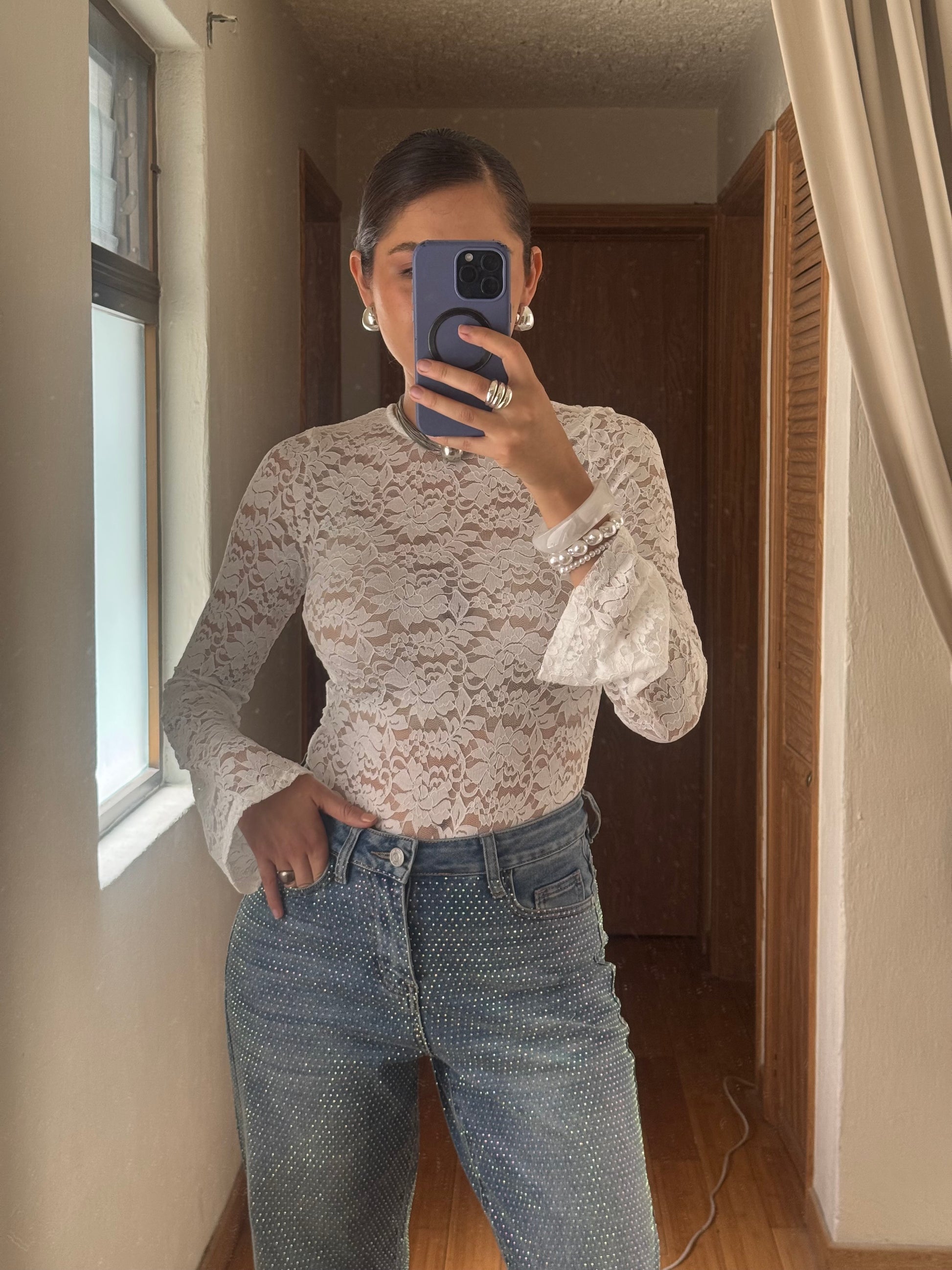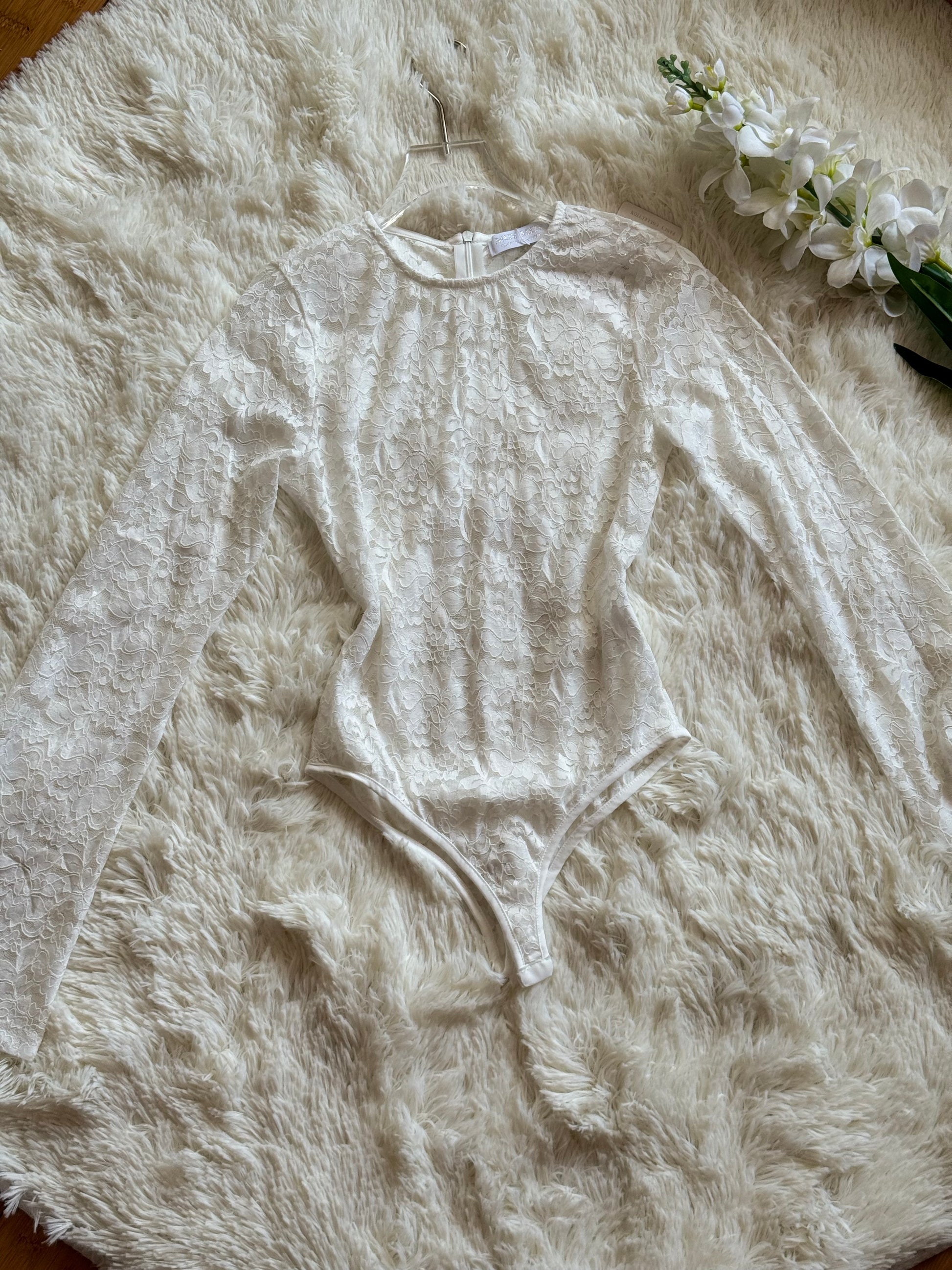 Este body de encaje cuenta con una elegante manga holgada, lo que lo hace ideal para una ocasión especial o para agregar un toque de sofisticación a tu atuendo diario. Diseñado con materiales de alta calidad, este body te brindará un ajuste cómodo y una apariencia elegante.