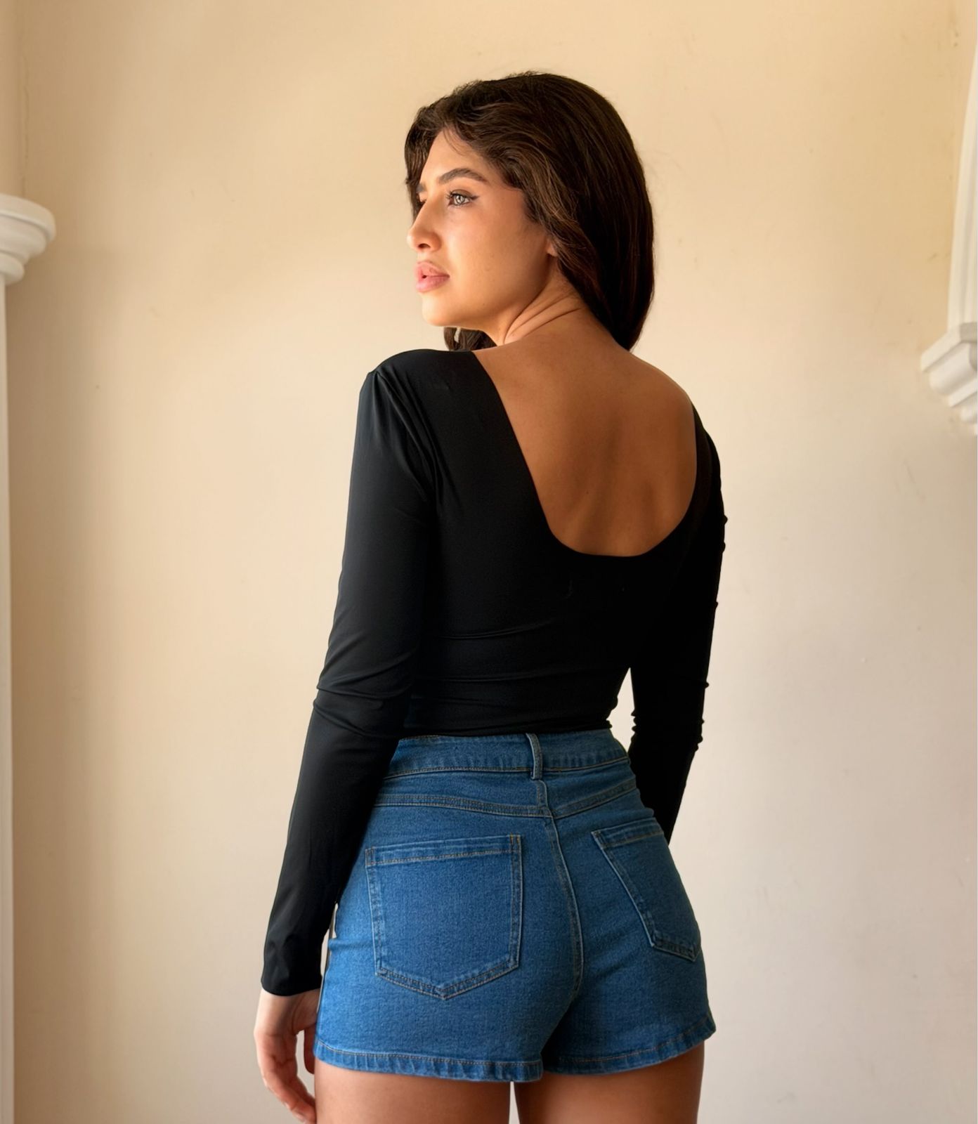 Diseñado para destacar tu espalda, este body cuenta con un escote profundo que crea un efecto visual impactante. La tela se ajusta cómodamente al cuerpo, ofreciendo soporte y libertad de movimiento. Perfecto para ocasiones especiales, noches de salida o cuando quieras sentirte segura y elegante. Su corte versátil permite combinarlo fácilmente con diferentes prendas. Un básico atrevido que eleva cualquier look con estilo y confianza.
