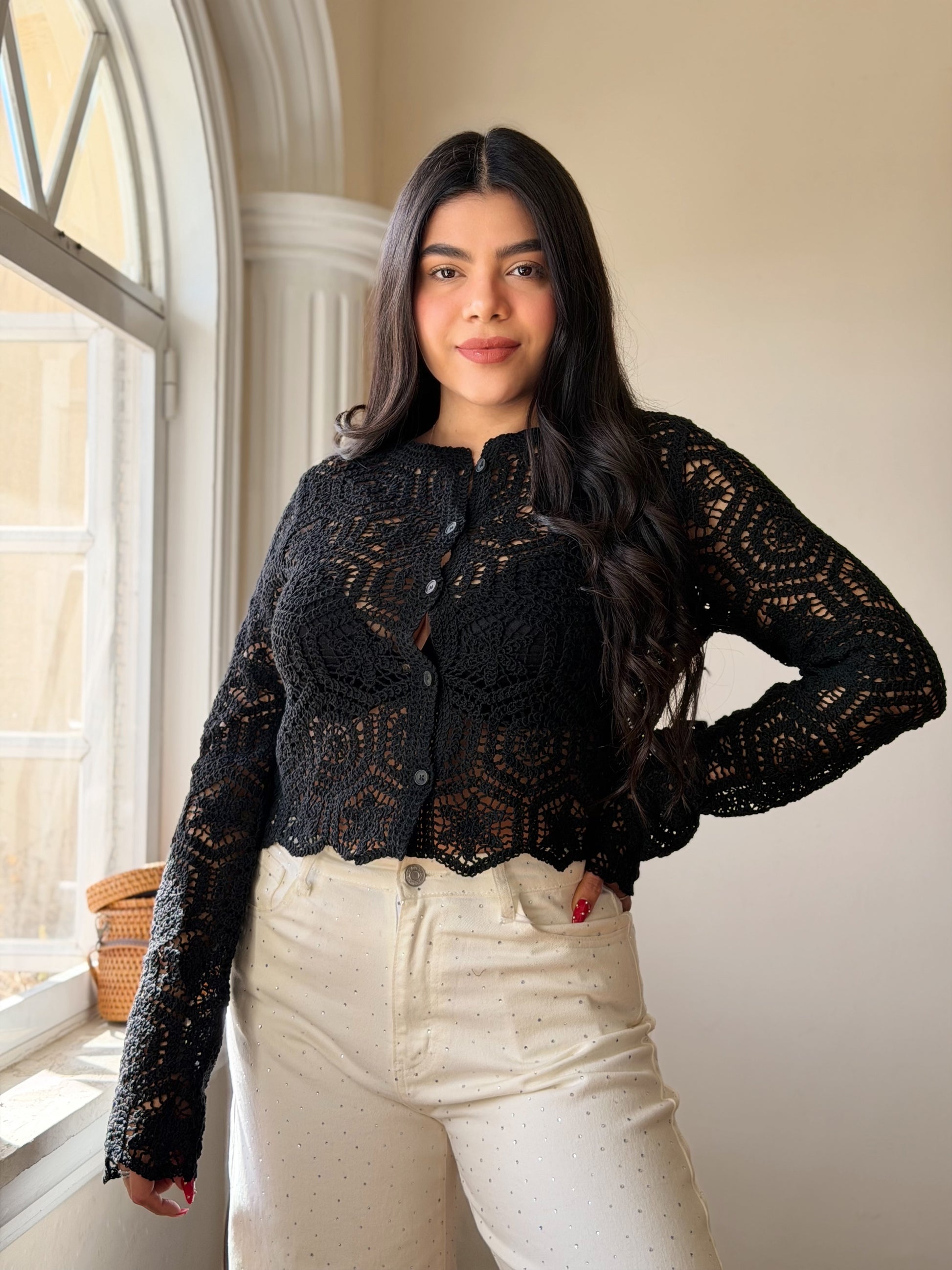 Descubre la elegancia artesanal con nuestro Cardigan Corto Crochet, la pieza perfecta para elevar cualquier look. Tejido a mano con técnica de crochet, este cardigan combina comodidad y estilo en un diseño versátil que funciona tanto para ocasiones casuales como más sofisticadas. Su corte acortado es ideal para usar sobre camisetas, vestidos o blusas, creando capas modernas y favorecedoras. La textura delicada del crochet añade movimiento y dimensión a tu outfit, mientras que su confección cuidadosa garantiza durabilidad. Perfecto para transiciones de temporada, este cardigan es la inversión que tu guardarropa necesita.