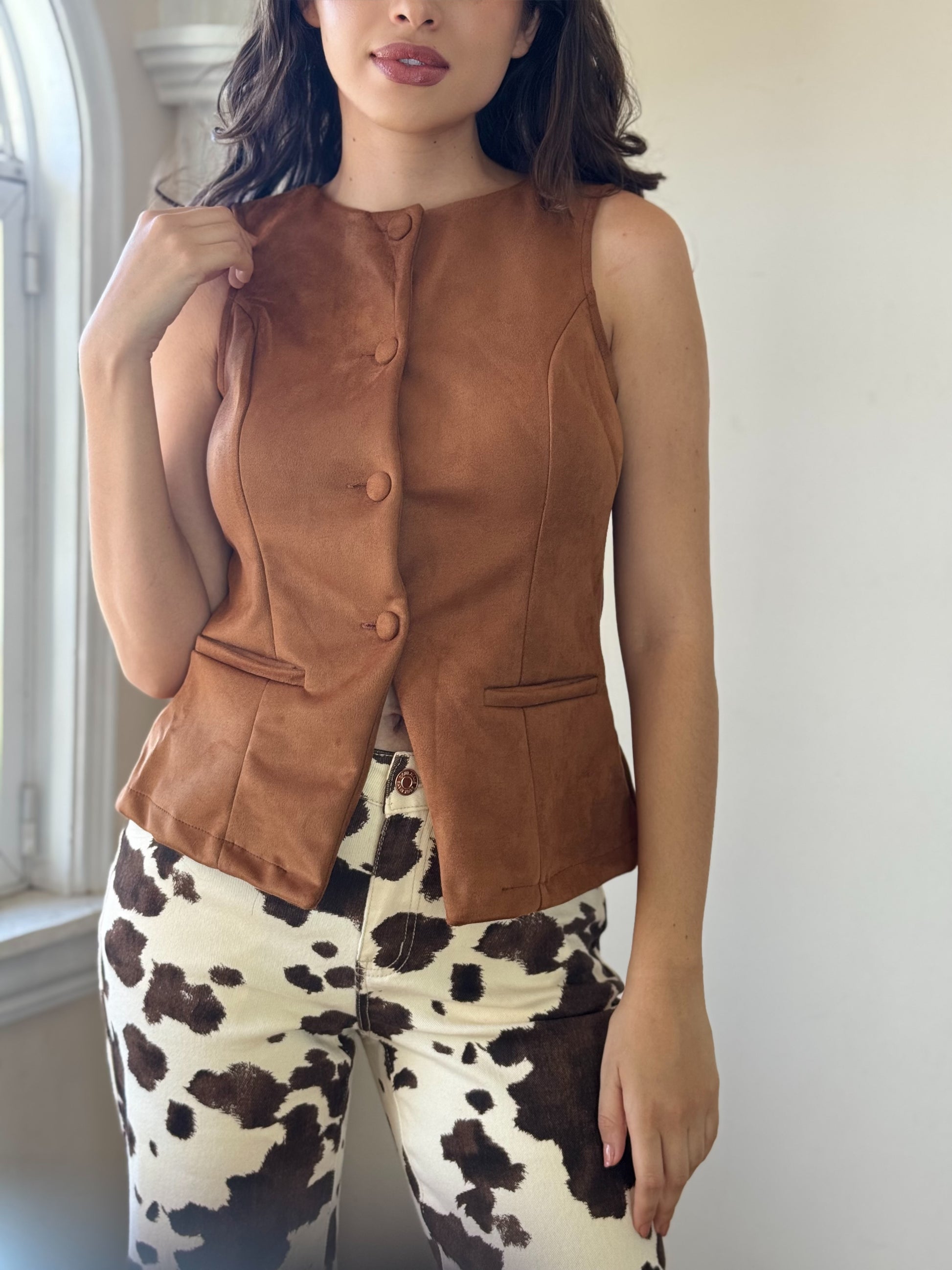 Este chaleco de gamuza es una prenda clásica y elegante, perfecta para cualquier ocasión. Su material de alta calidad lo hace duradero y resistente, mientras que su diseño atemporal lo convierte en una pieza versátil que nunca pasa de moda. Dale un toque de sofisticación a tu guardarropa con este chaleco de gamuza.