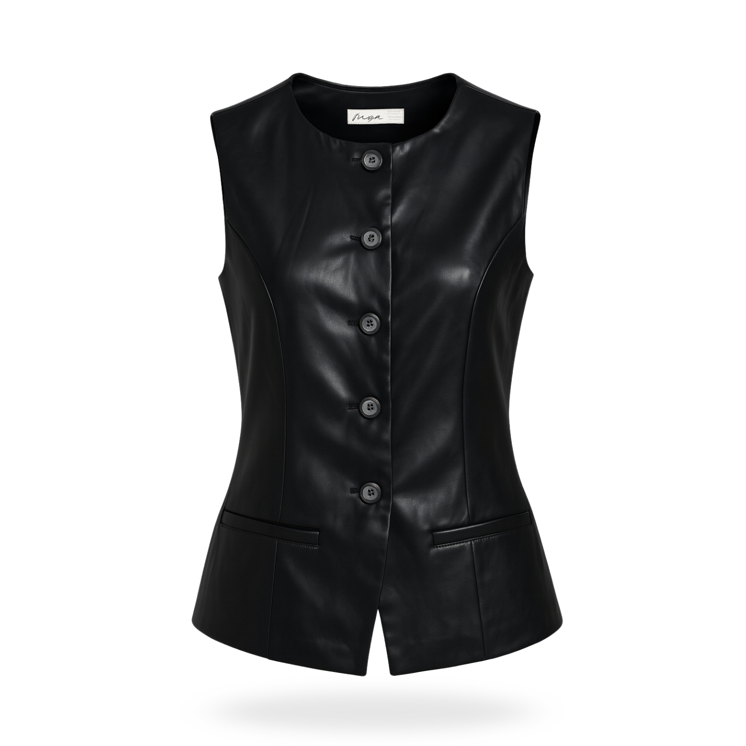 Chaleco de vinipiel con forro y cuello redondo. Protección y estilo en un solo producto. Material de alta calidad que garantiza comodidad y durabilidad. Perfecto para cualquier ocasión y temporada.