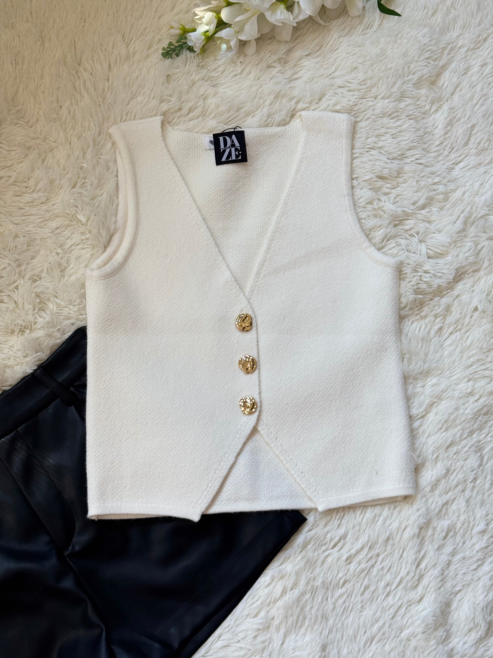 Chaleco tejido con botones dorados