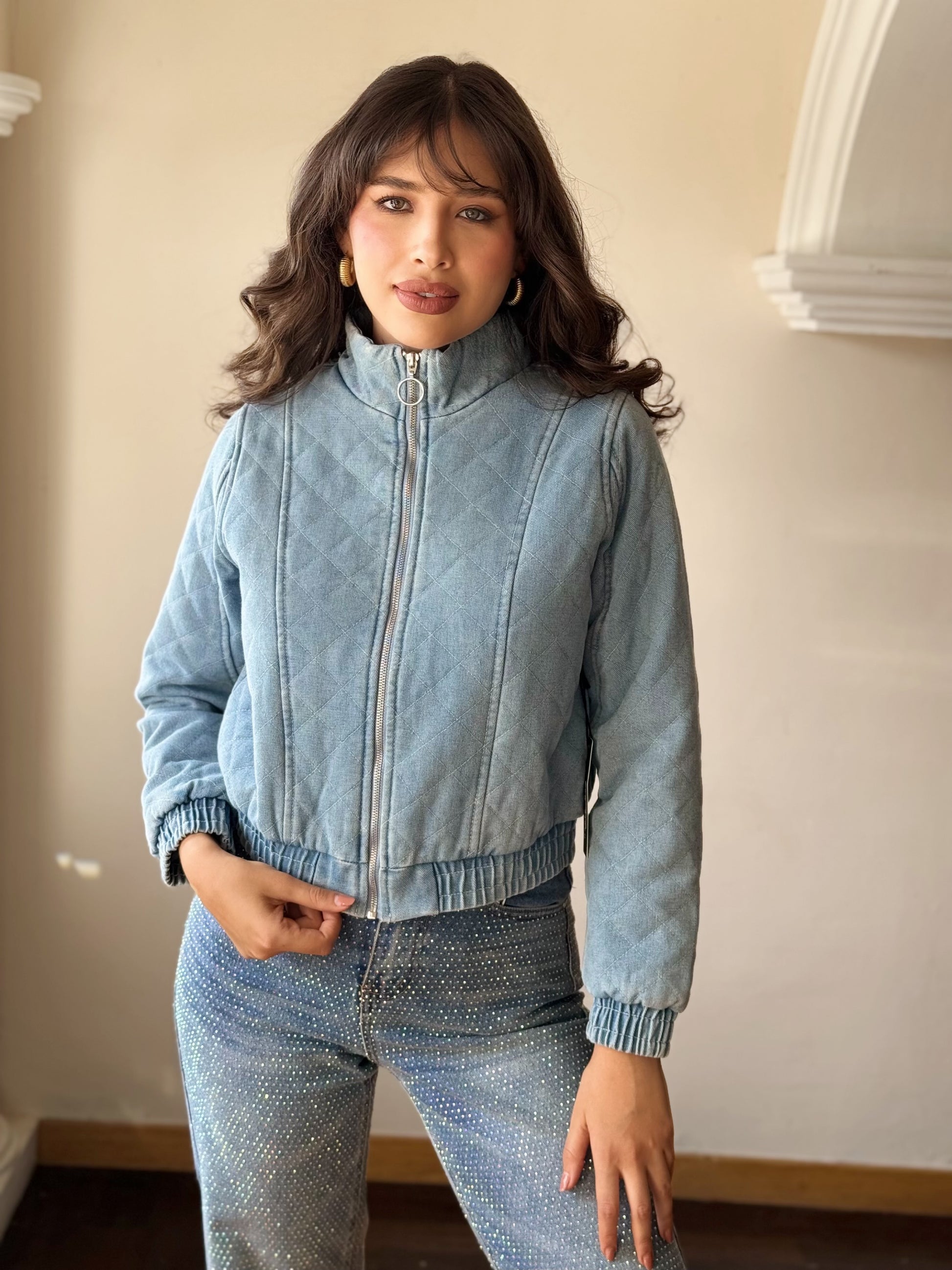 Chamarra capitonada de mezclilla