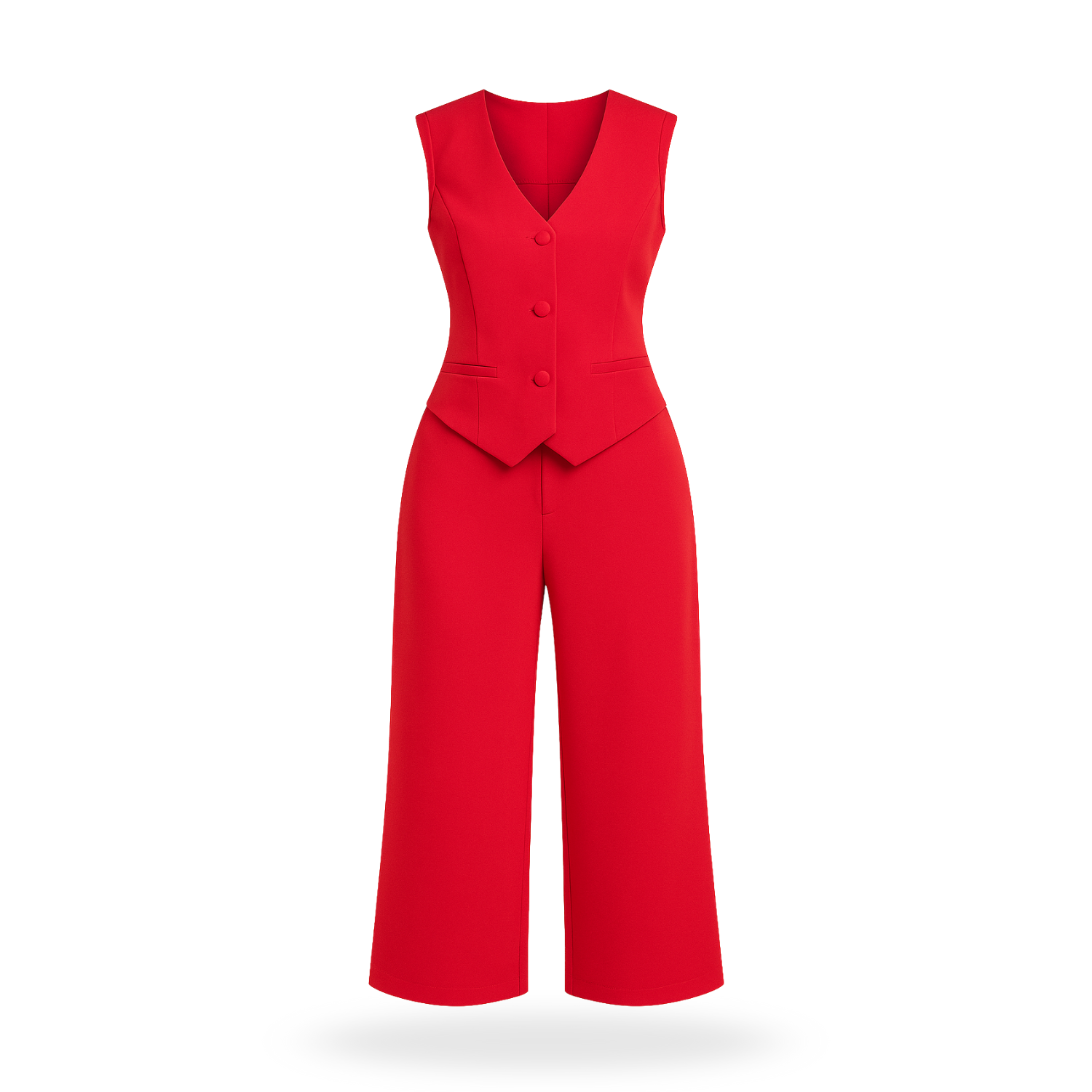 Este conjunto sastre de elegante escote V viene acompañado de un chaleco forrado. Perfecto para ocasiones formales, este conjunto realzará tu figura y te dará un aspecto sofisticado y profesional. Hecho con materiales de alta calidad, este conjunto garantiza comodidad y durabilidad. ¡Haz una impresión duradera con este conjunto de vestir escote V!