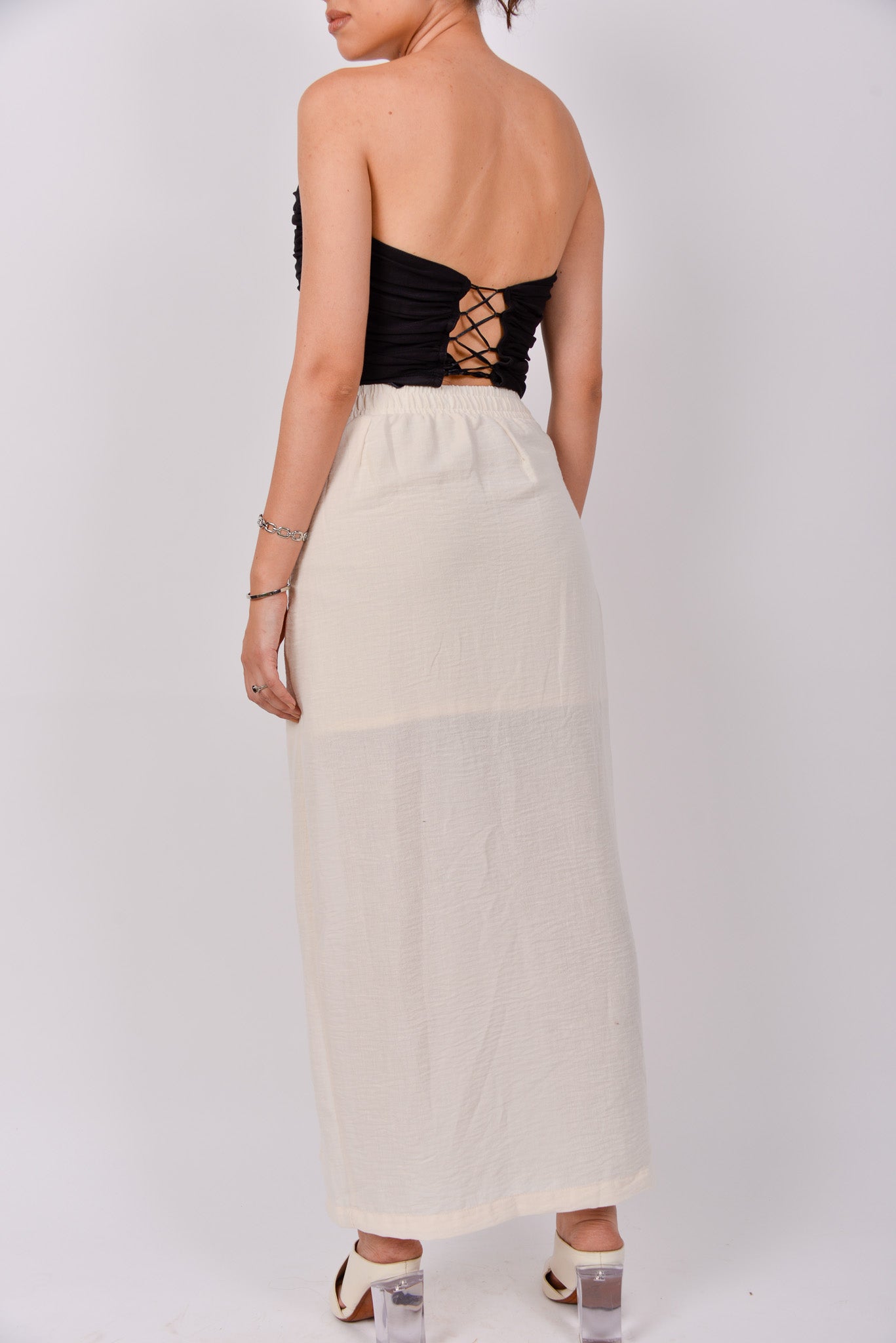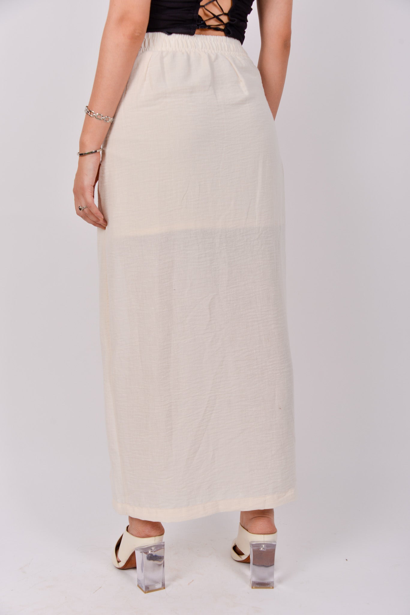 ¡Luce elegante y fresca con nuestra falda con abertura! Con su diseño de lápiz, forro y tiras ajustables, te sentirás cómoda y segura todo el día. La tela fresca y elástica te permitirá moverte con facilidad y estilo. ¡No te pierdas esta prenda versátil para cualquier ocasión!
