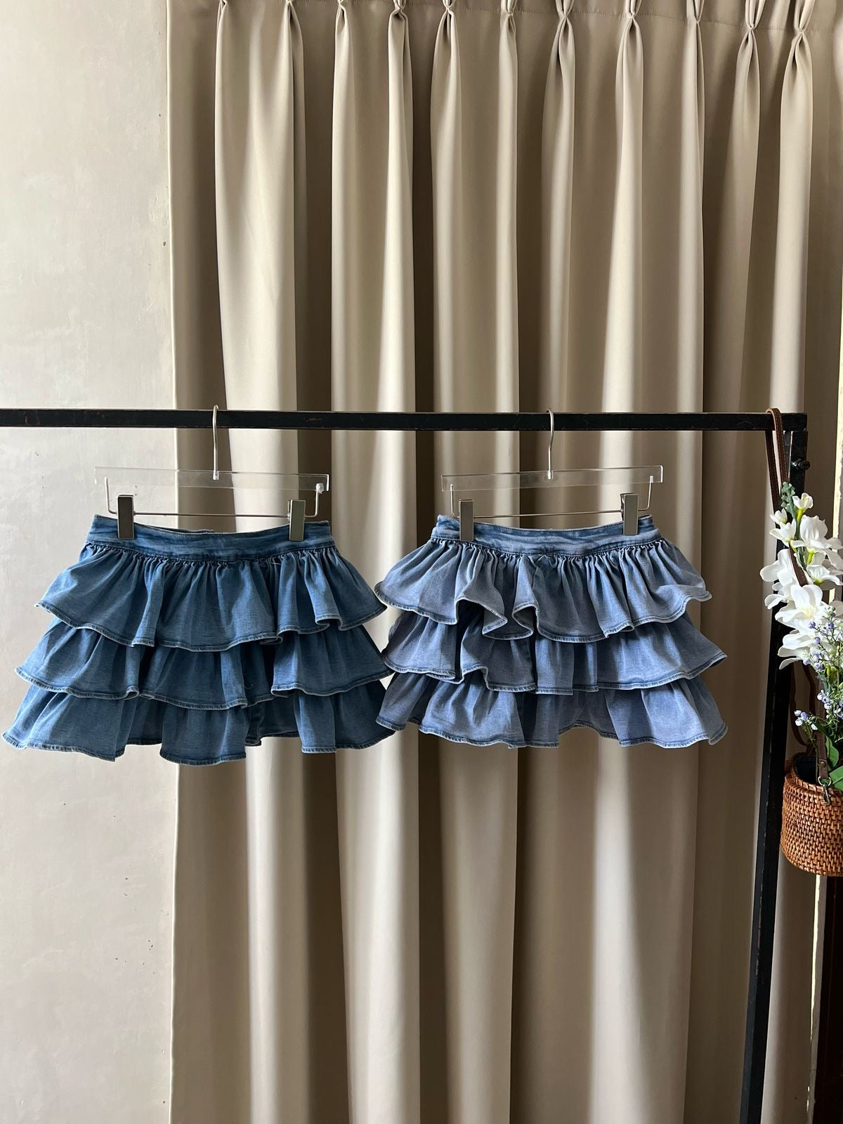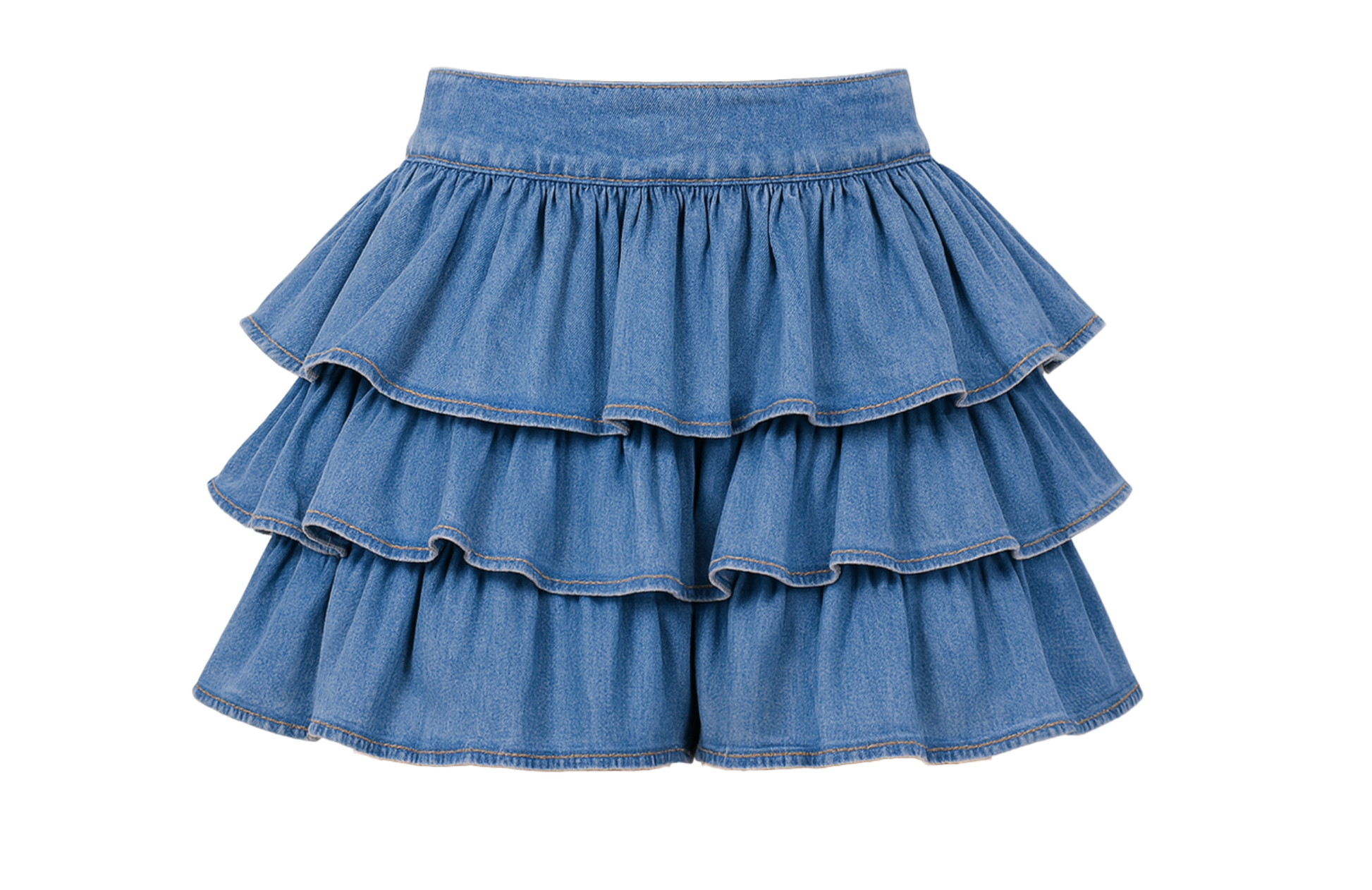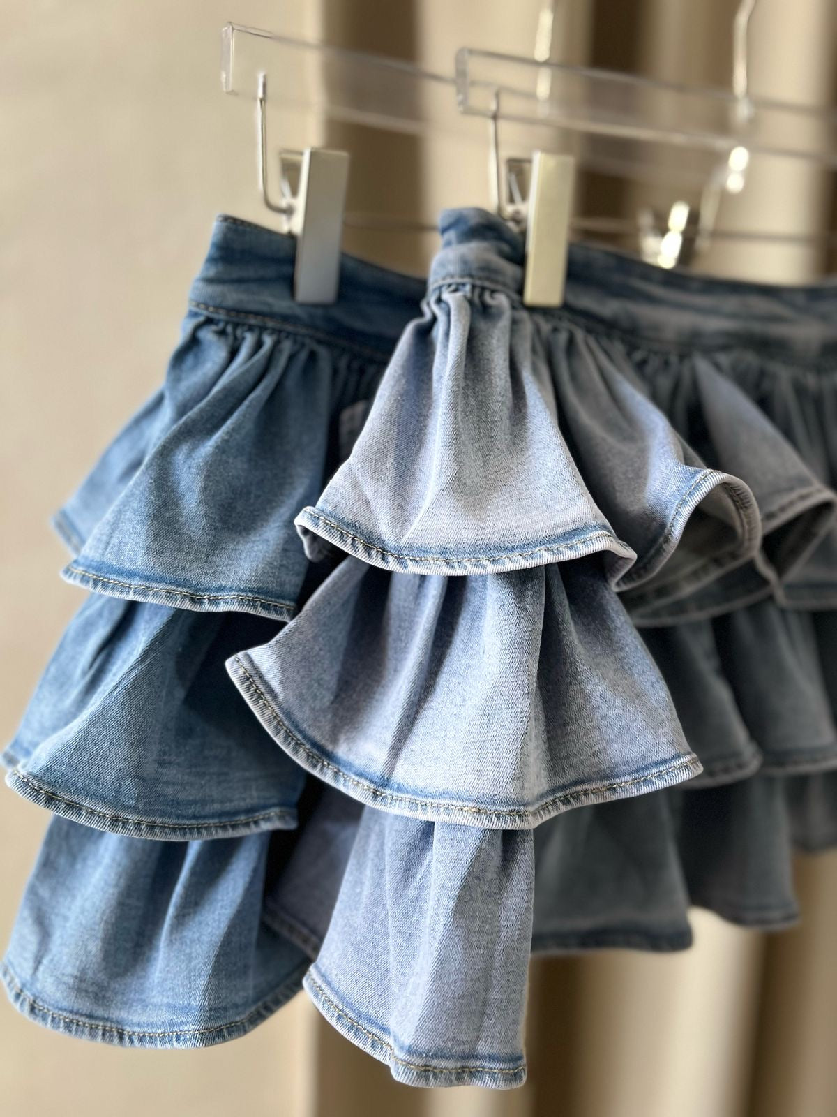 ¡Luce a la moda esta temporada con nuestra falda de mezclilla con olanes! Su estilo mini y los detalles de olanes le dan un toque único y femenino. Ideal para cualquier ocasión, ¡será tu nueva prenda favorita!
