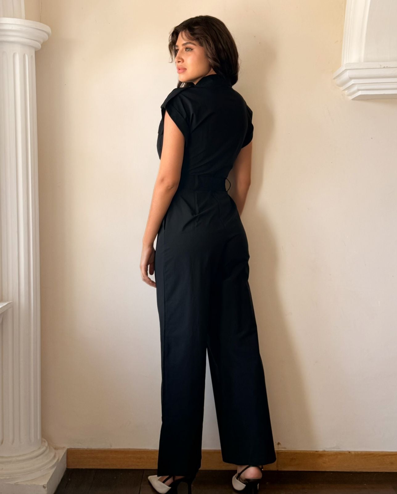 Pantalón palazzo de corte elegante y cómodo, diseñado con cinturón integrado que define la cintura y realza tu silueta. Confeccionado en tela fluida y transpirable, ofrece libertad de movimiento sin comprometer el estilo. Perfecto para ocasiones formales, eventos especiales o para un look sofisticado en el día a día. Su largo hasta el tobillo y caída impecable crean una línea alargada y favorecedora. Un básico versátil que combina con cualquier top y complementa tu guardarropa con elegancia.