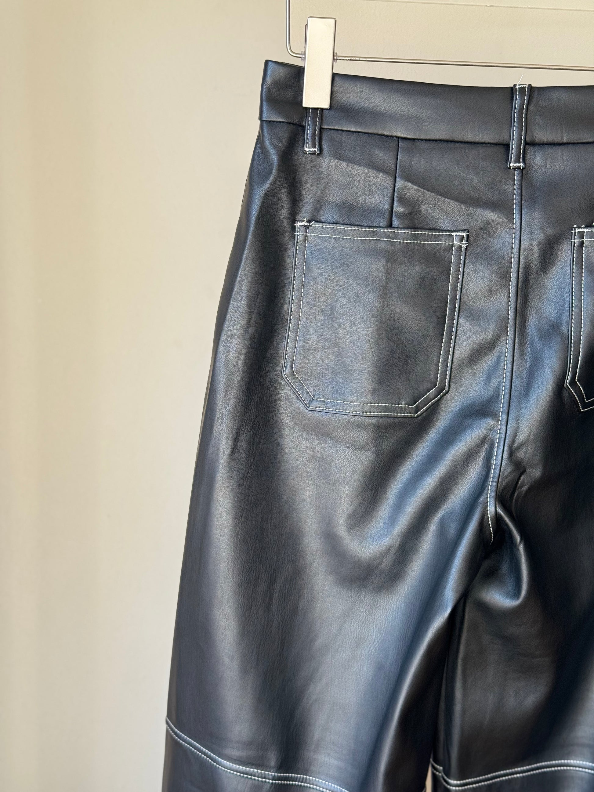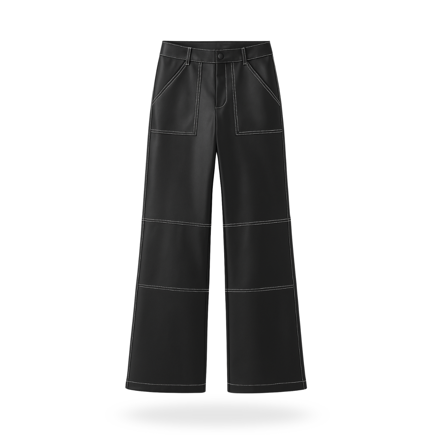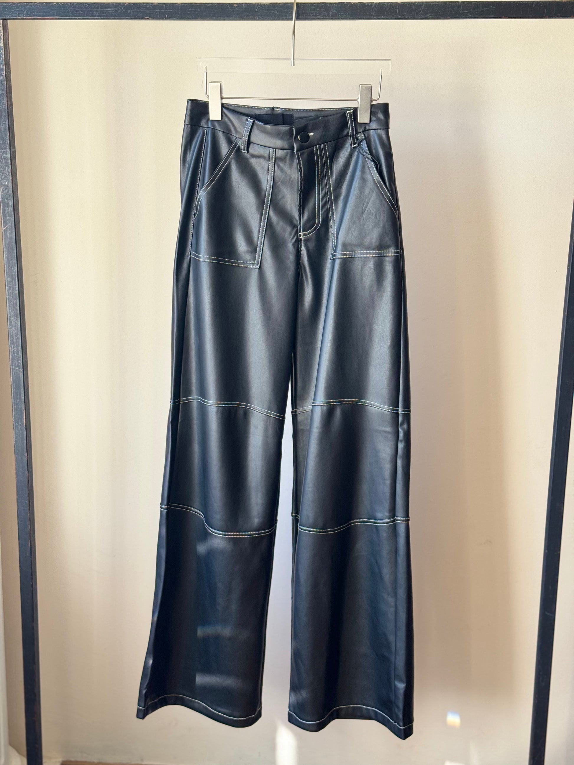 Este pantalón negro de vinipiel cuenta con costuras blancas y está afelpado por dentro, lo que lo hace perfecto para mantenerte abrigado y cómodo en días fríos. Su diseño elegante y material resistente lo convierten en una excelente opción para cualquier ocasión. ¡Consigue un look moderno y sofisticado con este pantalón de vinipiel!