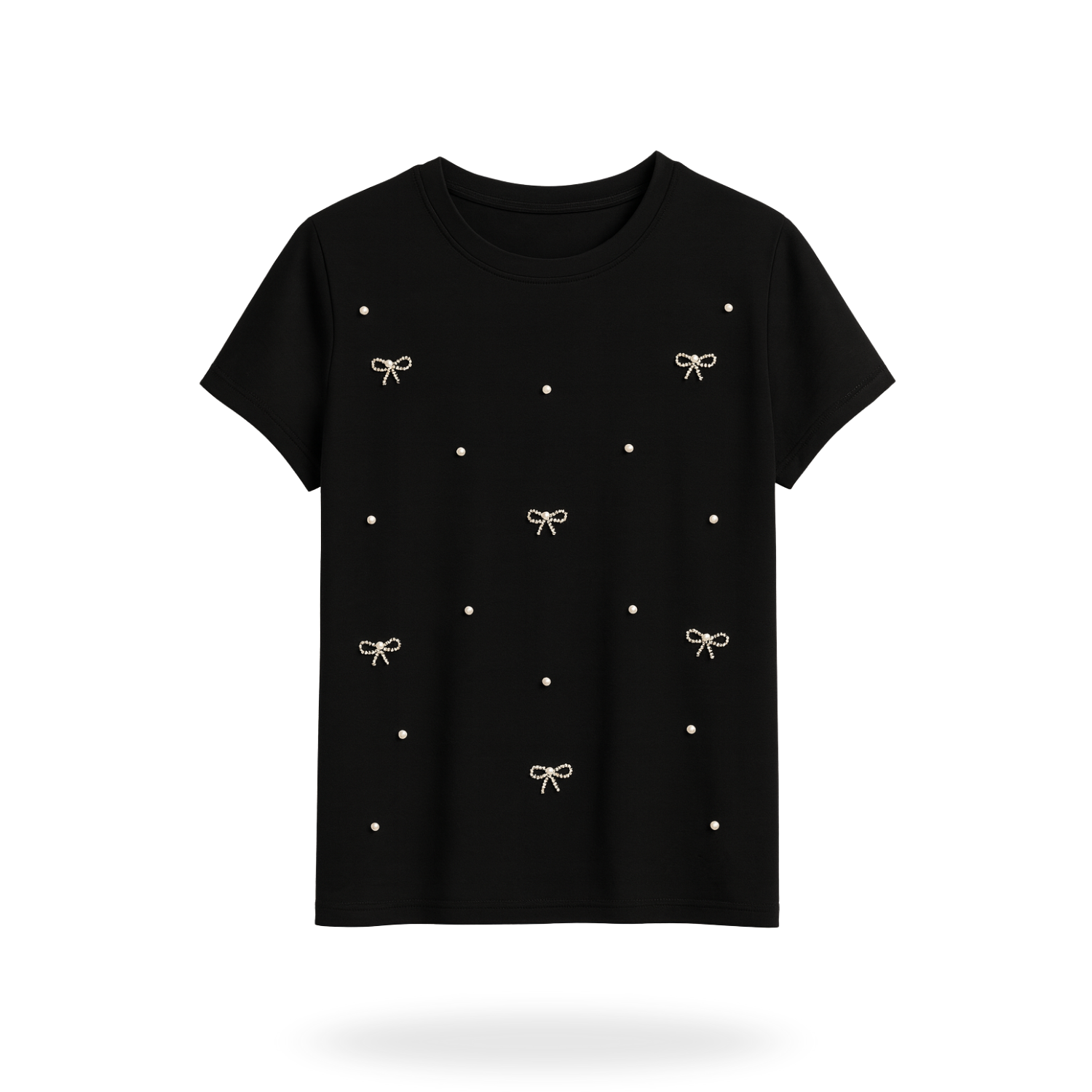 Esta playera over size es perfecta para cualquier ocasión. Con su bordado de moño y perlas, le dará un toque elegante y sofisticado a tu atuendo. Su estilo básico la hace versátil y cómoda de llevar, y su corte over size es ideal para cualquier tipo de cuerpo. ¡Haz una declaración de moda con esta playera única en su tipo!