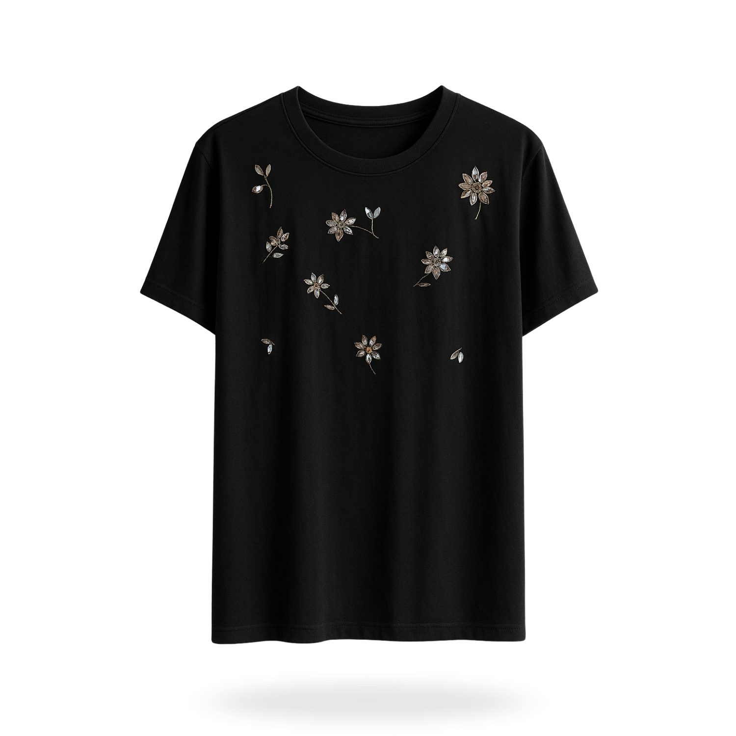 La playera de manga corta con aplicación es perfecta para cualquier ocasión. El diseño con aplicación agrega un toque de elegancia y estilo a esta playera básica. Hecha con materiales de alta calidad, te brindará comodidad y durabilidad. ¡Una opción imprescindible para cualquier guardarropa!