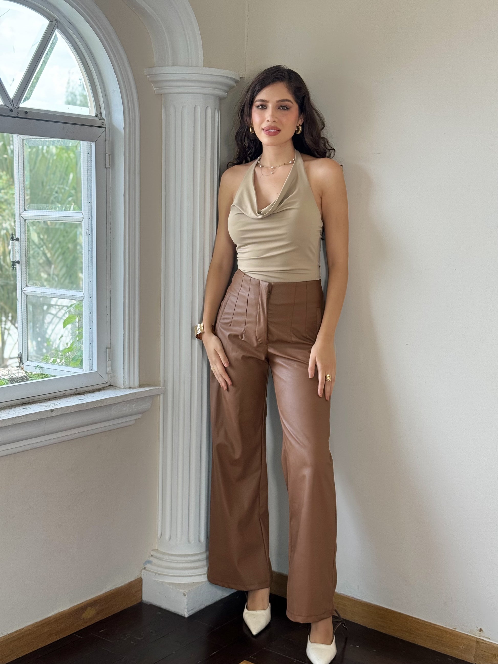 El pantalón Vinipiel con pinzas es una prenda elegante y moderna. Hecho de vinipiel de alta calidad, ofrece una apariencia sofisticada y duradera. El diseño de pinzas acentúa la silueta y brinda un ajuste cómodo. Perfecto para cualquier ocasión, este pantalón es una excelente opción para un look profesional y elegante.