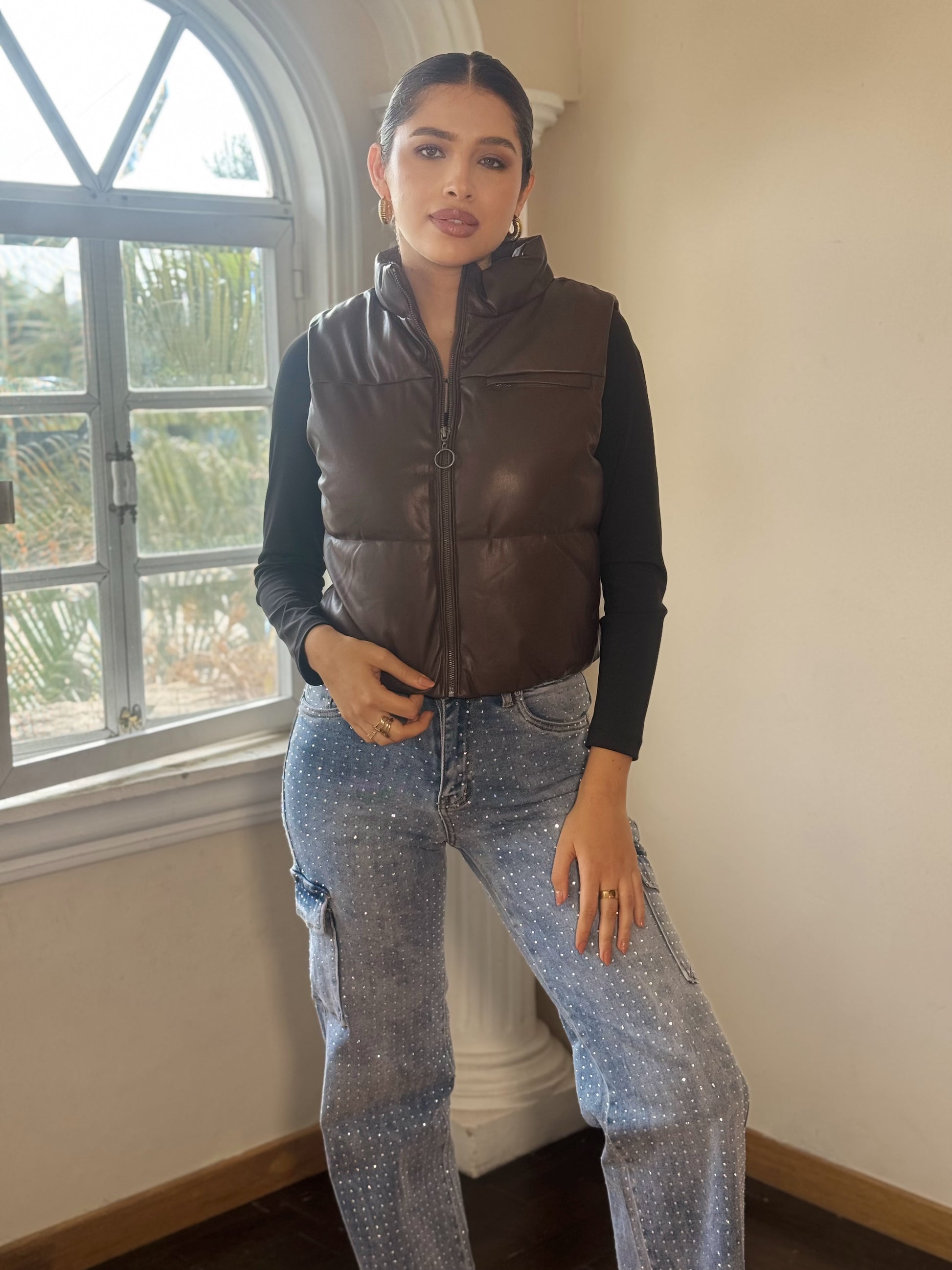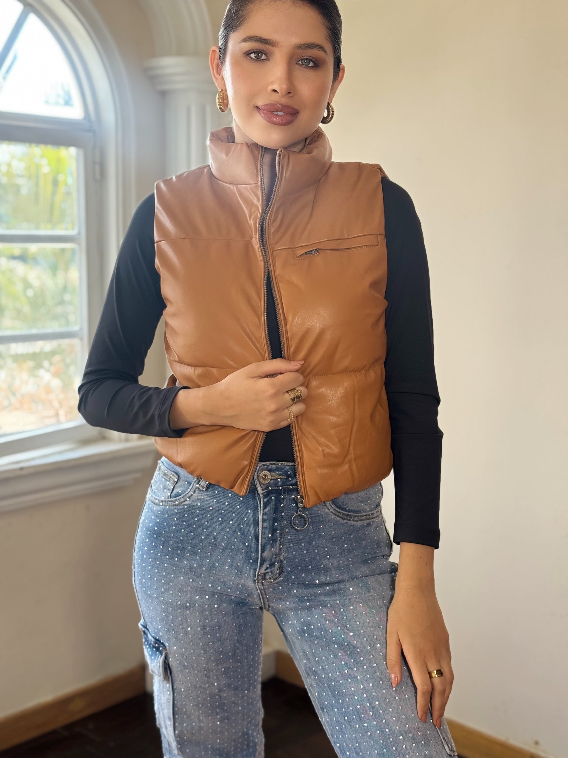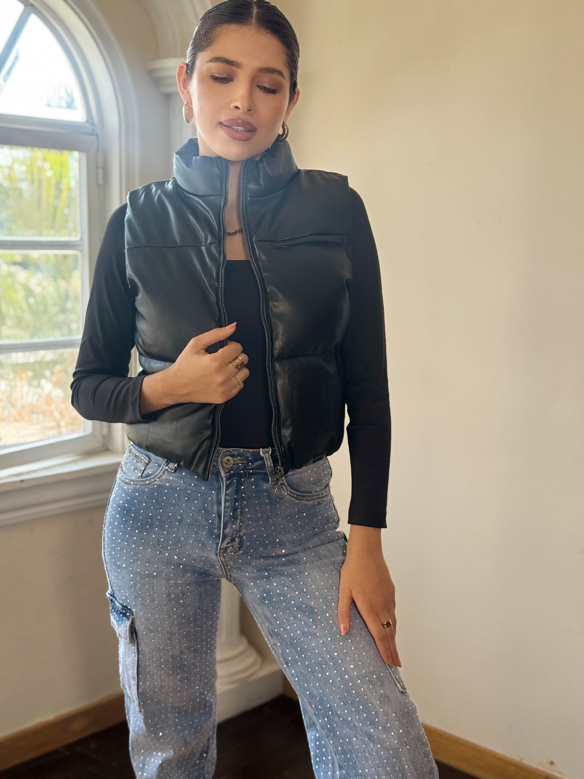 Este moderno chaleco bomber de vinipiel es perfecto para cualquier ocasión. Hecho con materiales de alta calidad, este chaleco te mantendrá abrigado y a la moda. Su diseño clásico y versátil te permite combinarlo con diferentes estilos, convirtiéndolo en una pieza esencial en tu guardarropa. ¡No te quedes sin él!