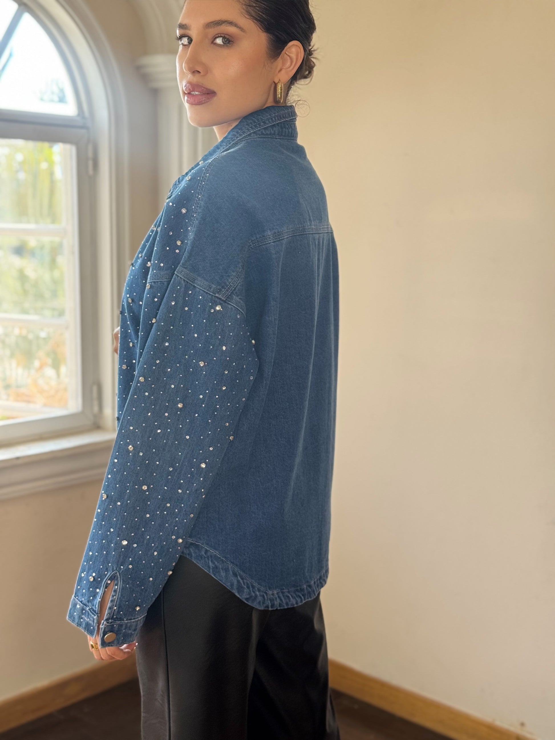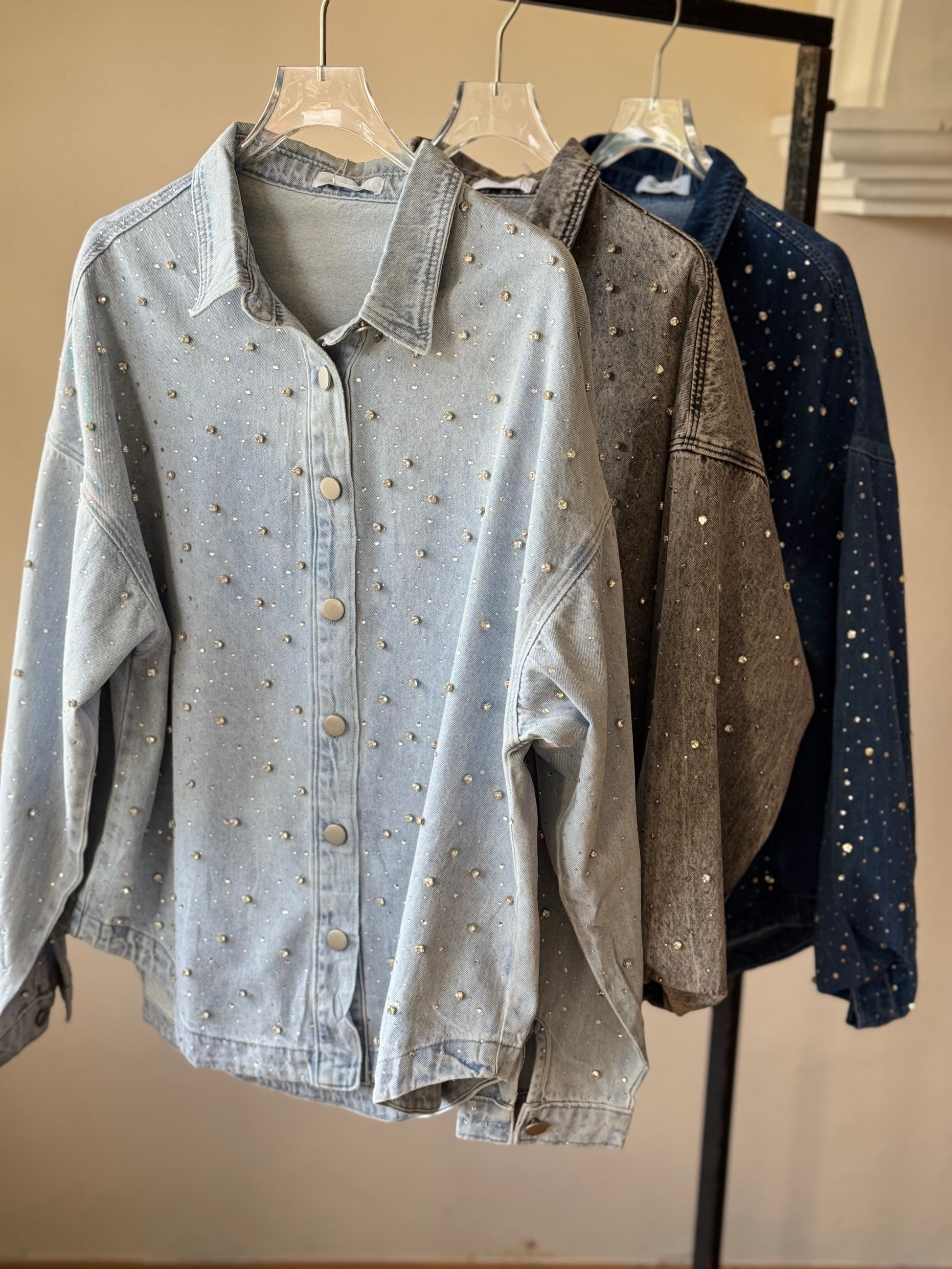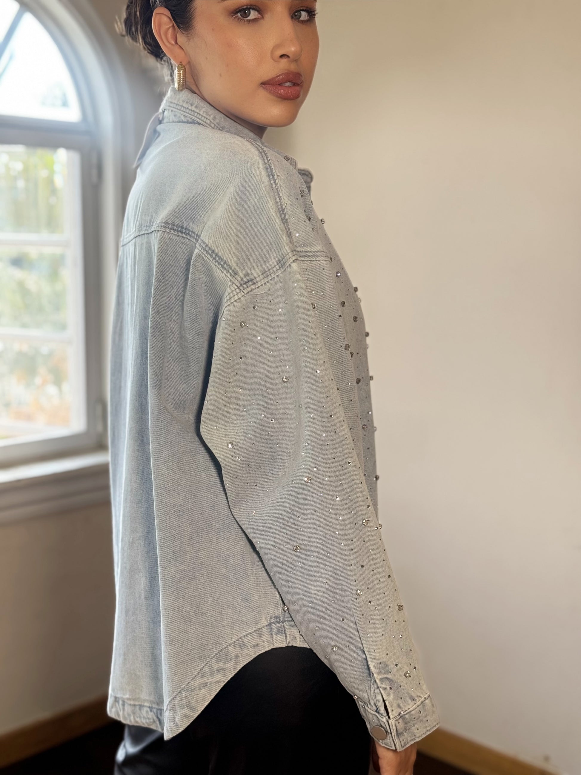 Expresa tu estilo único con nuestra camisa de mezclilla con brillos. Confeccionada con tejido de alta calidad, esta sobre camisa agrega un toque de brillo a tu atuendo. Su diseño elegante y moderno es perfecto para cualquier ocasión. ¡Atrévete a brillar con nuestra camisa de mezclilla!
