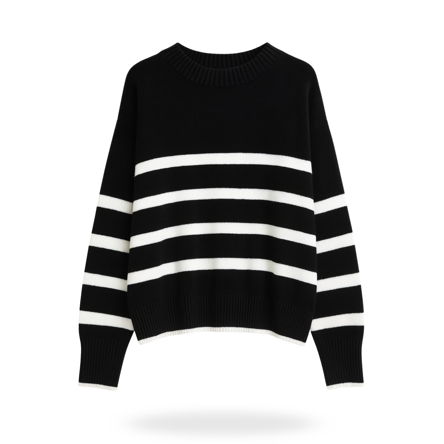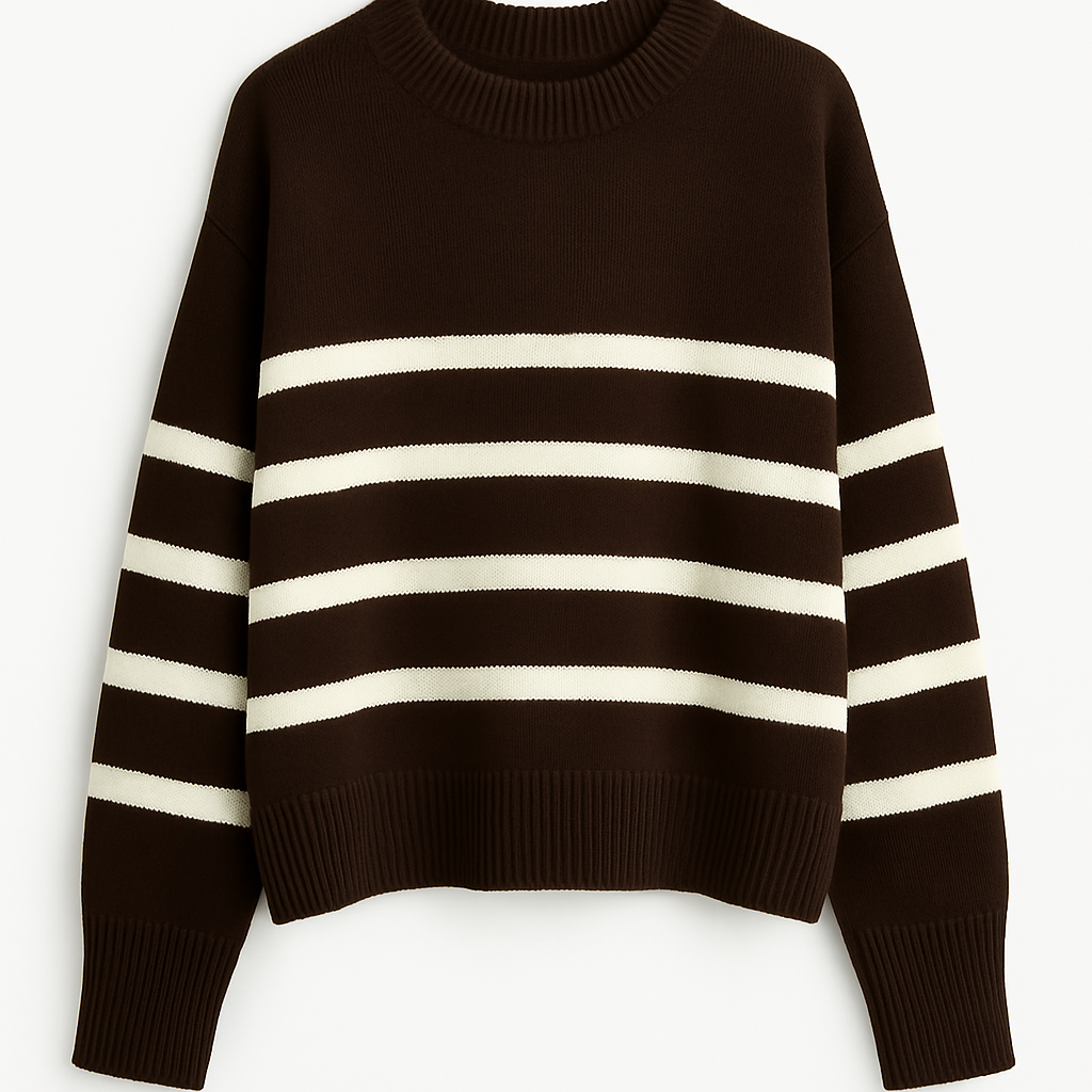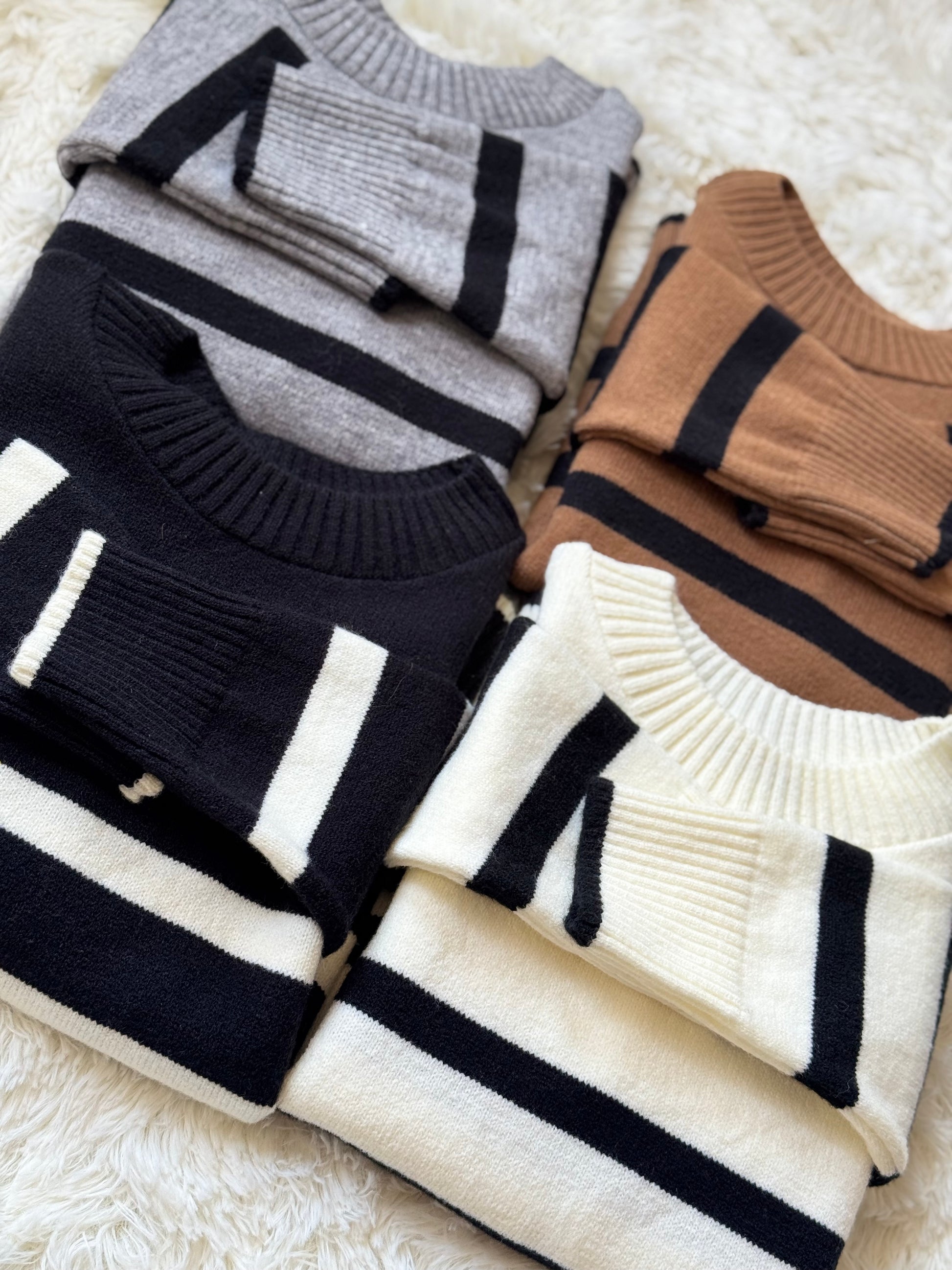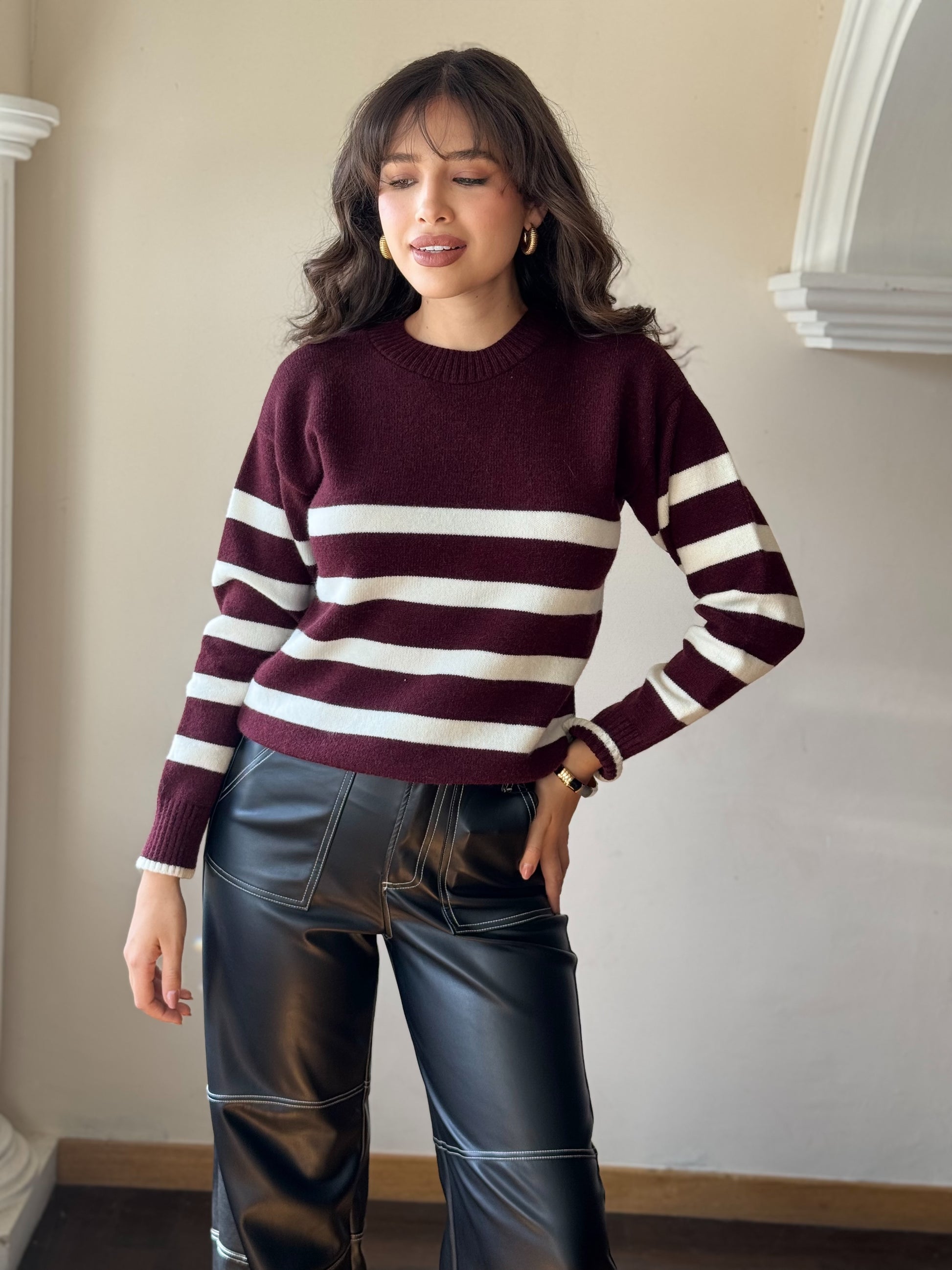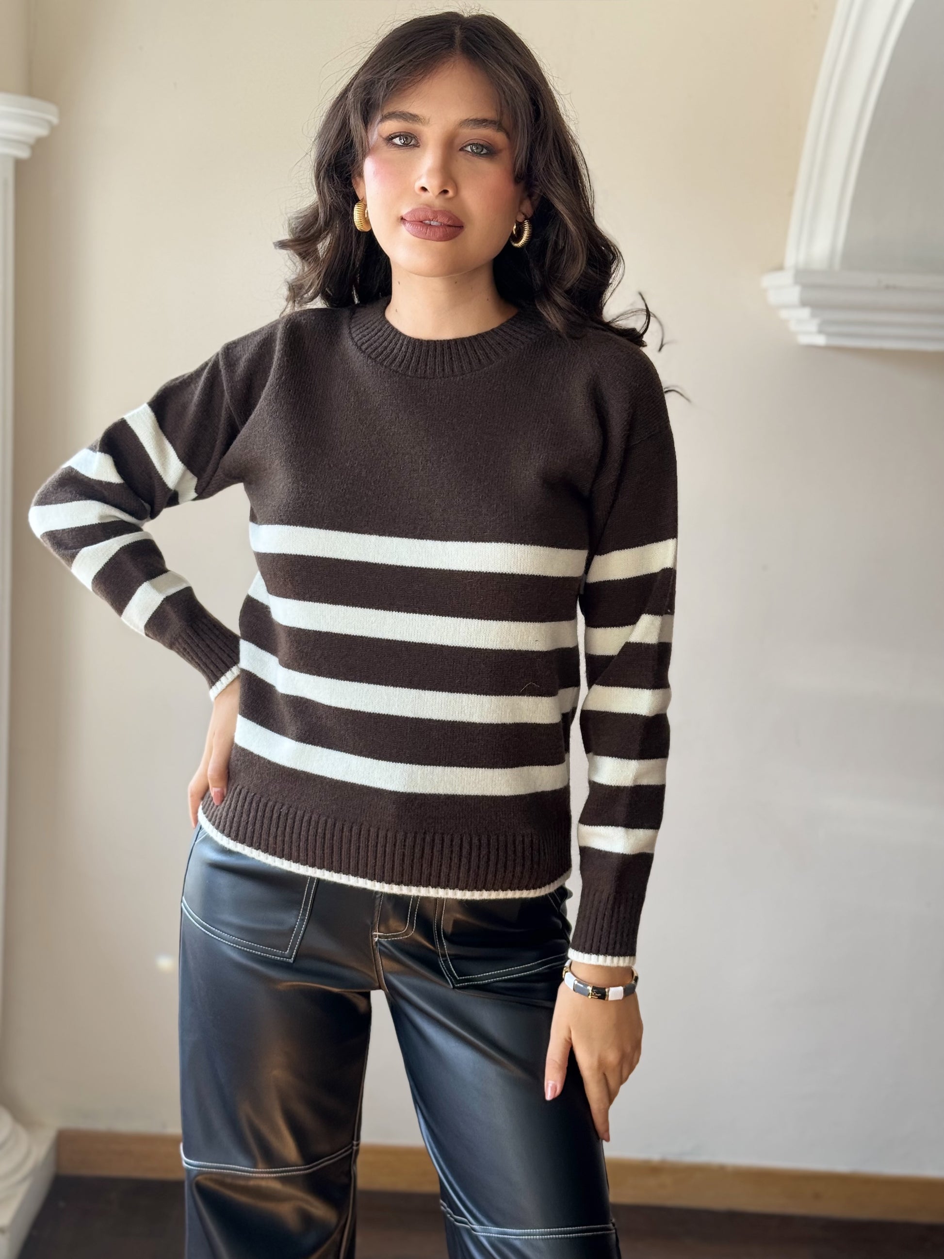 Este suéter de rayas es una opción elegante y versátil para el clima frío. Con su diseño de rayas clásicas, este suéter puede combinar fácilmente con cualquier atuendo. Hecho con materiales de alta calidad, brinda comodidad y abrigo al mismo tiempo. ¡Manténgase abrigado y a la moda con este suéter de rayas!