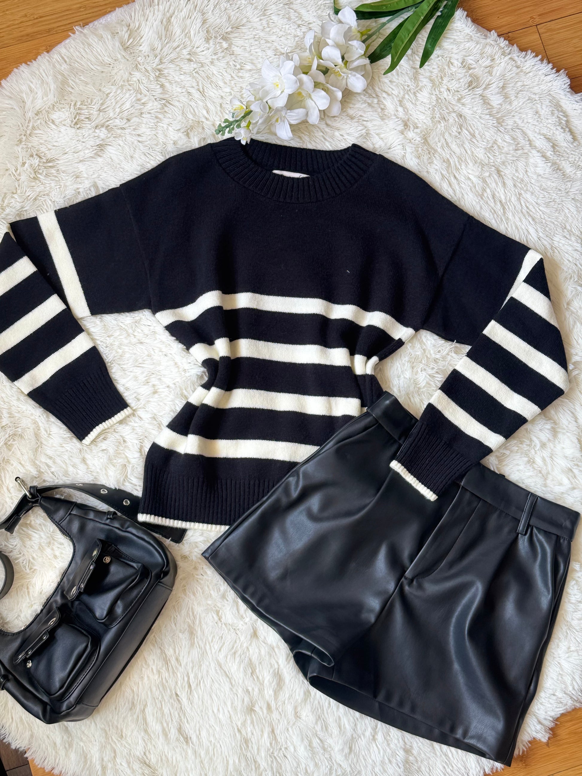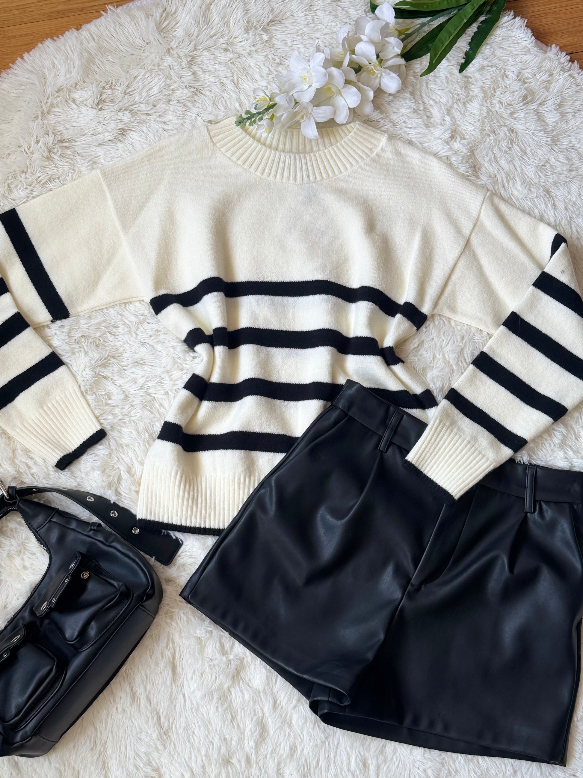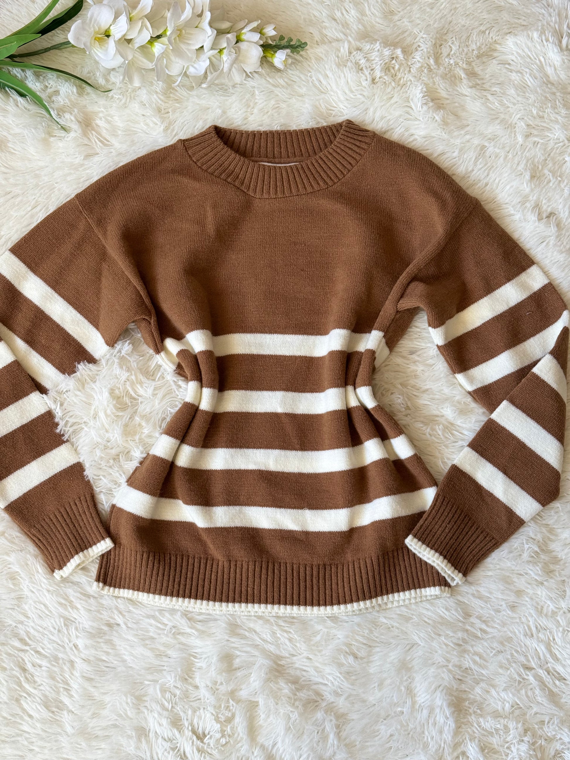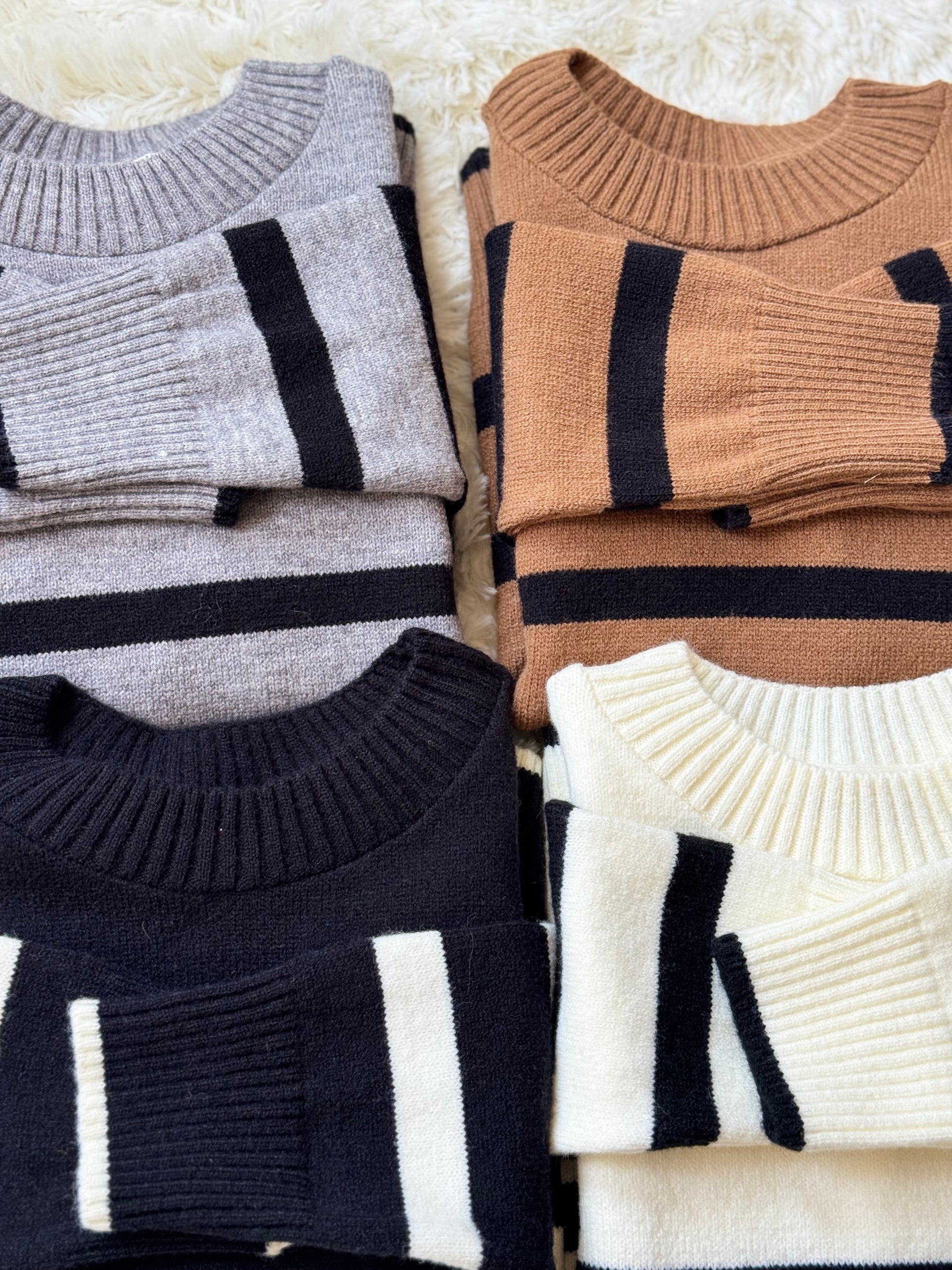 Este suéter de rayas es una opción elegante y versátil para el clima frío. Con su diseño de rayas clásicas, este suéter puede combinar fácilmente con cualquier atuendo. Hecho con materiales de alta calidad, brinda comodidad y abrigo al mismo tiempo. ¡Manténgase abrigado y a la moda con este suéter de rayas!