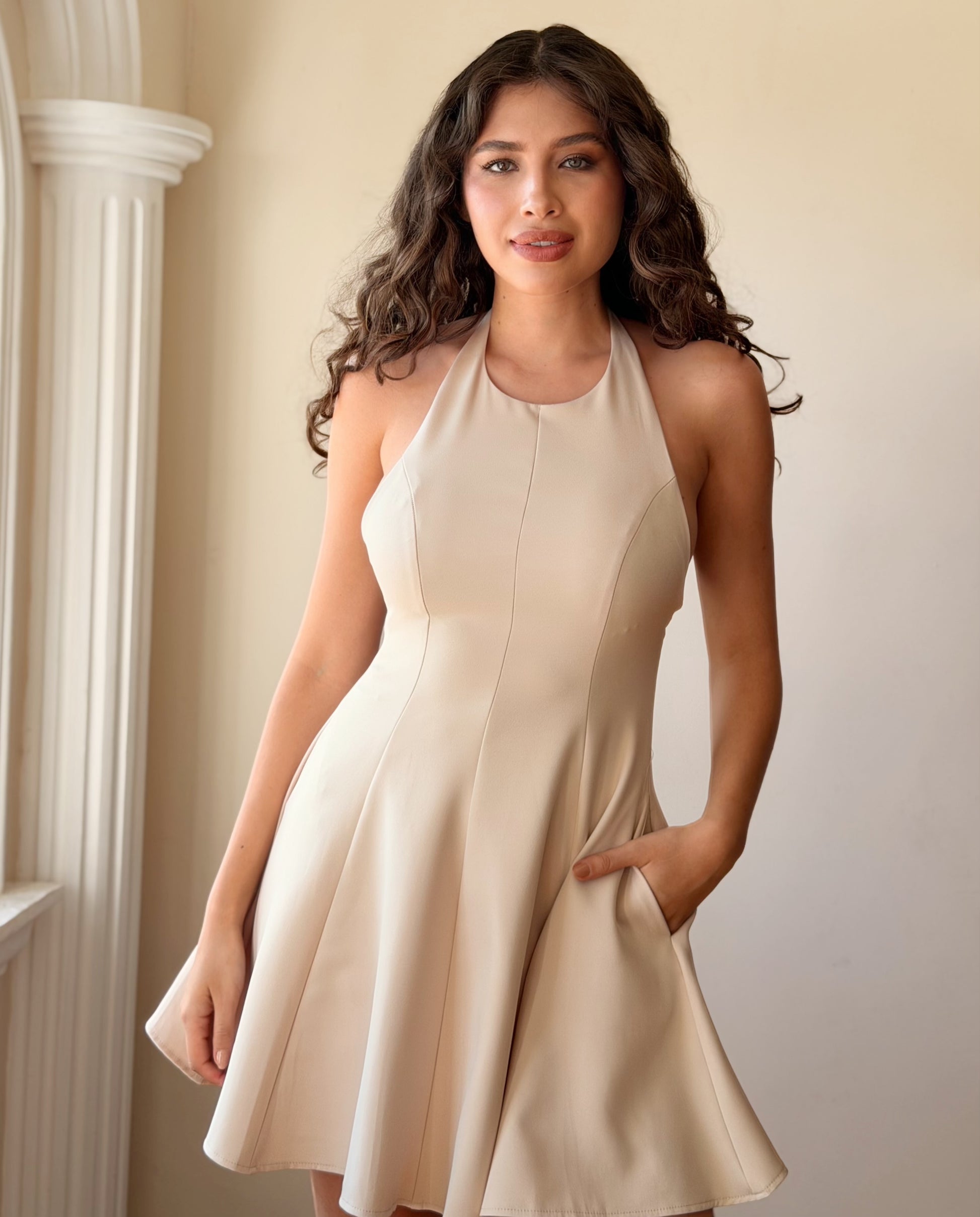 Descubre la elegancia sin límites con este vestido corte A sin espalda, el diseño perfecto para cautivar en cualquier ocasión especial. Su silueta favorecedora realza tu figura mientras el detalle de espalda descubierta añade un toque de sofisticación y atrevimiento. Confeccionado con materiales de calidad, ofrece comodidad y movimiento fluido durante toda la noche. Ideal para bodas, cócteles o eventos donde desees brillar con estilo. Un básico versátil que se adapta a tu personalidad y garantiza que serás el centro de atención.