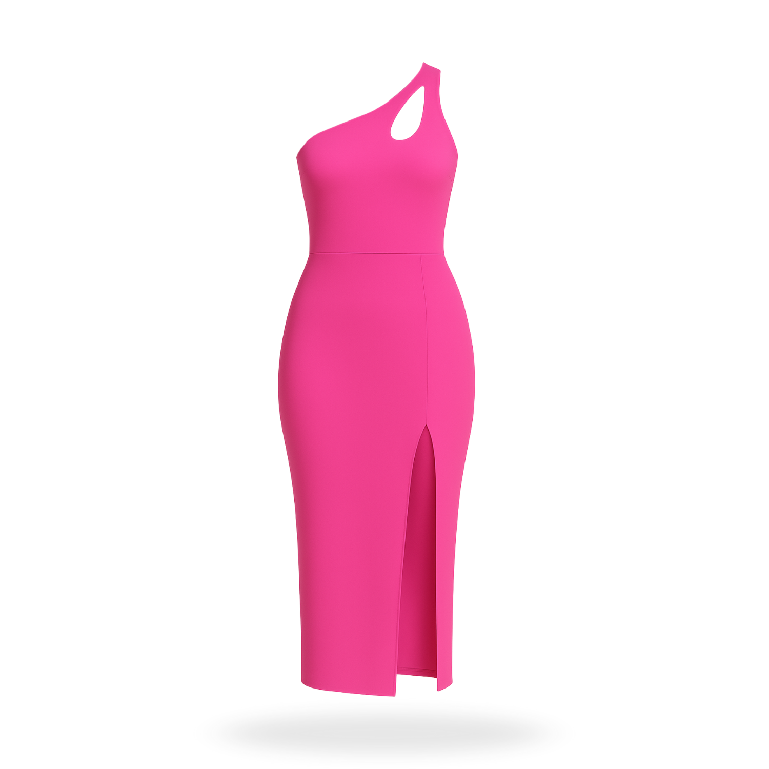 Vestido un hombro asimétrico con escote en la pierna hecho con tela strech. Este vestido no solo es moderno y elegante, sino que también ofrece comodidad gracias a su tejido elástico. Luce sofisticado y a la moda con este vestido que resaltará tu figura.